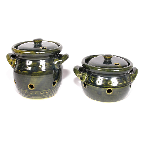 This crock provides the ideal environment for keeping your garlic fresh longer. The holes in the crock allow air circulation to maintain the correct level of humidity inside. This crock is great for storing garlic right on your countertop!